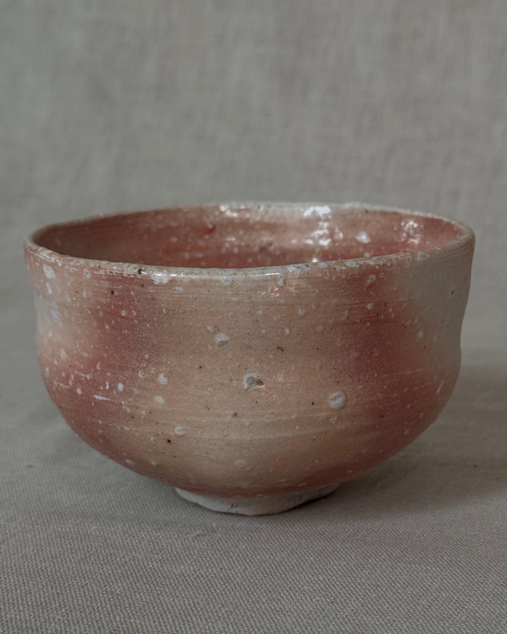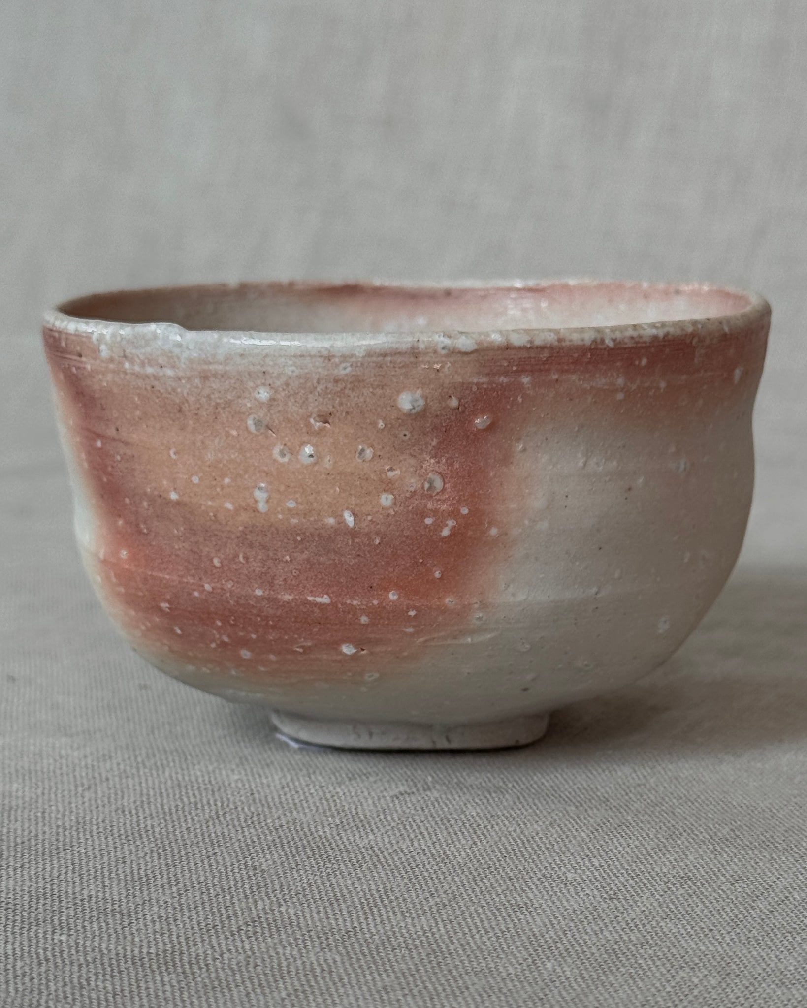 White speckled Australian stoneware clay with heavy ash and flashing and a Shino glaze on the inside of the piece. Please note this piece is unglazed on the inside, however the clay is water tight and food safe.